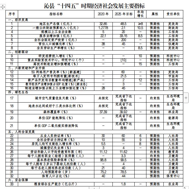 沁縣“十四五”時期經濟社會發展主要指標